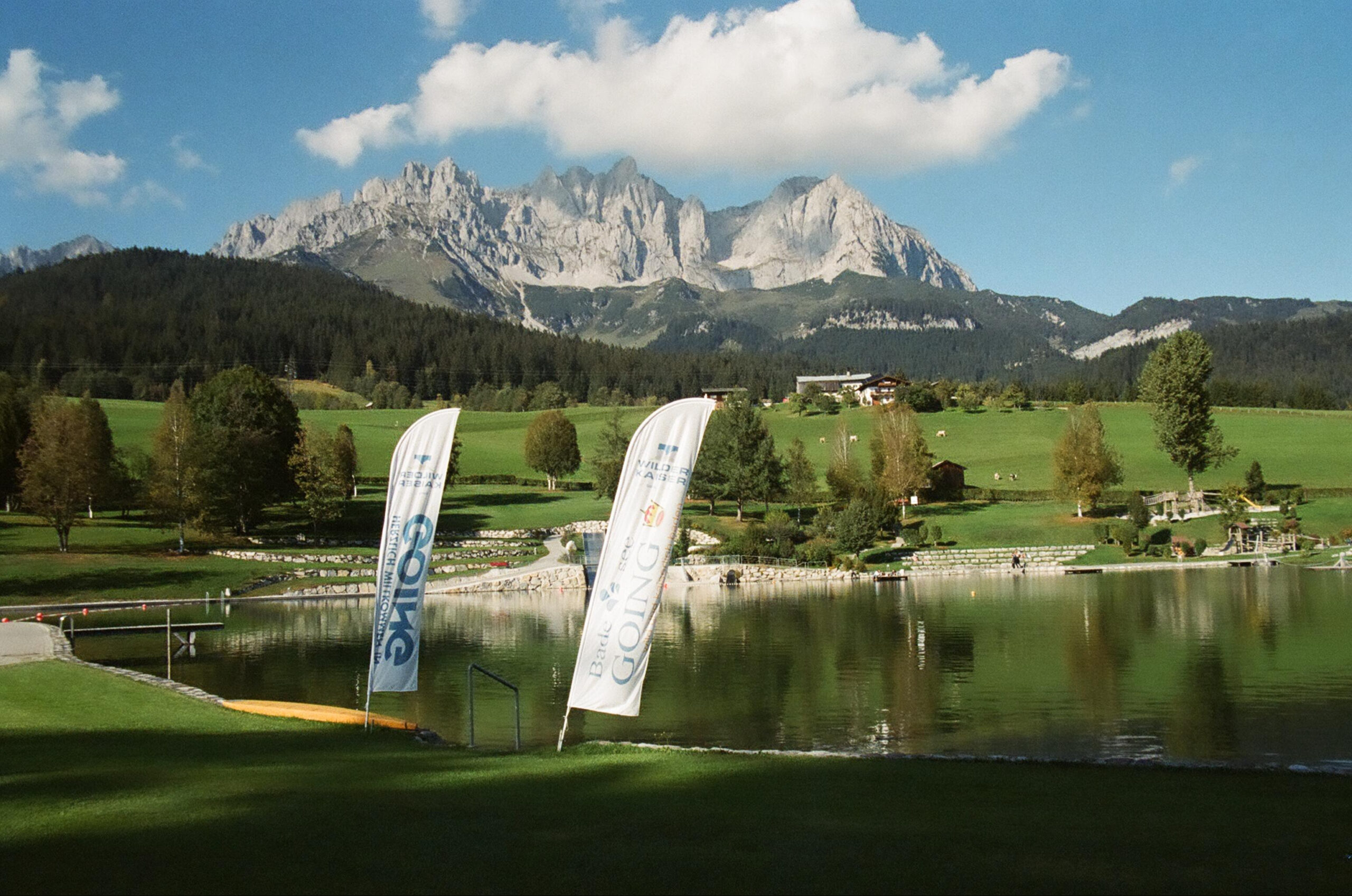 An heißen Sommertagen bietet der Badesee Abkühlung! Vor dem Panorama des Wilden Kaisers läßt es sich prima schwimmen und relaxen, die große Wasserrutsche ist ein Magnet für Groß und Klein ebenso wie die Beach – Volleyball – Felder. Vom Haus Sonnseite aus ist der Badesee in ca 15 Gehminuten ereichbar.
